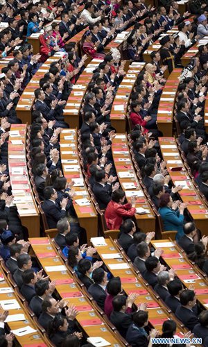 Deputies to the 13th National People's Congress (NPC) press buttons to vote at the closing meeting of the first session of the 13th NPC at the Great Hall of the People in Beijing, capital of China, March 20, 2018. (Xinhua/Liu Weibing)