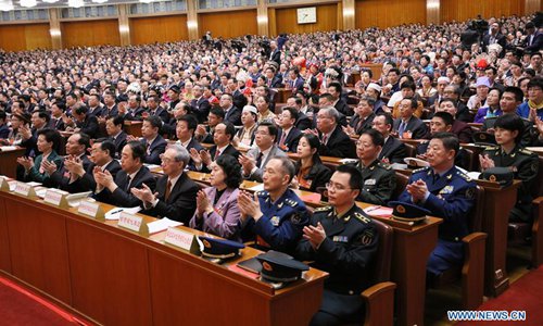 The first session of the 13th National People's Congress (NPC) holds its closing meeting at the Great Hall of the People in Beijing, capital of China, March 20, 2018. (Xinhua/Liu Weibing)