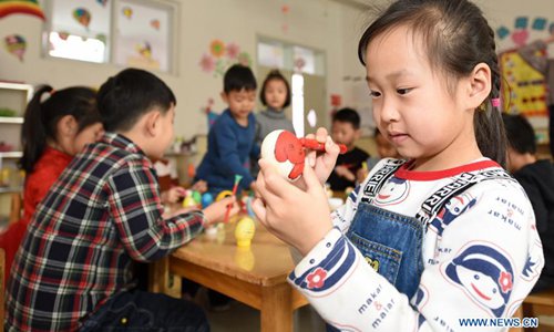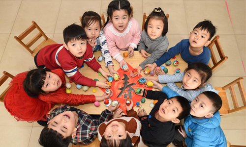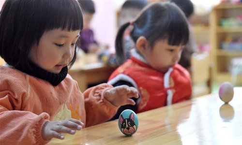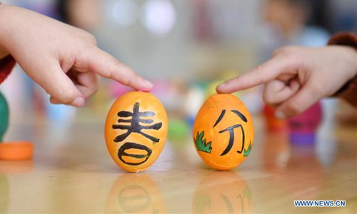 Children plays a game to stand eggs on end at a kindergarten in Handan, north China's Hebei Province, March 21, 2018, also the day of "Chunfen". Chunfen, which literally means Spring Equinox or Vernal Equinox, falls on the day when the sun is exactly at the celestial latitude of zero degrees. (Xinhua/Hao Qunying)