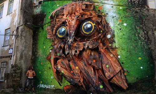 The environmentally conscious artist Artur Bordalo rifled the recycle bin to transform old rubbish into breathtaking works of art in 2015. He used damaged bumpers, discarded kitchen appliances, tires and bins to create stunning 3D murals of nature, aiming to draw attention to the problems of waste production and its effect on the planet.Photo:VCG