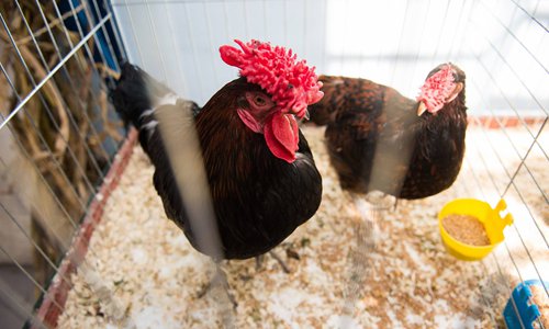 Polish Czbatka black and white chickens are seen during the Most Beautiful Chickens of the World Exhibition in Warsaw on Saturday. Photo: VCG