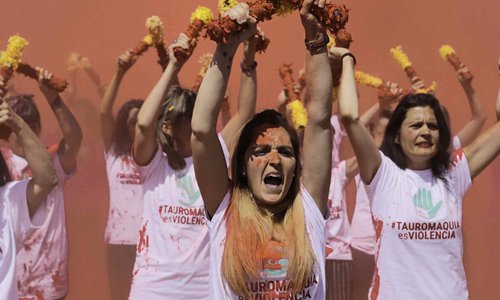 Animal rights supporters also demanded bullfighting to be removed from the country's list of national heritage. Photo:VCG