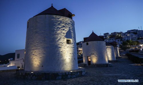 Photo taken on June 1, 2018 shows a windmill library in Astypalaia, Greece. The windmill library created in 2011 houses over 2,300 foreign language books donated by tourists and locals. (Xinhua/Lefteris Partsalis)
