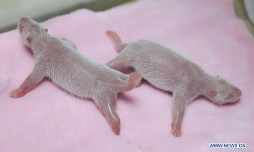 Photo taken on June 5, 2018 shows the first male-female panda twins born this year at the Chengdu Research Base of Giant Panda Breeding in southwest China's Sichuan Province. Panda Ya Yun gave birth to the twins Tuesday morning. The female cub weighed 135.3 grams and was born at 8:20 a.m. The male cub followed nine minutes later, weighing 148.8 grams. (Xinhua)