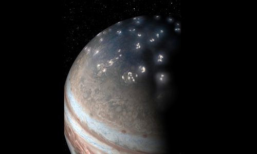 In a new paper published in Nature on Wednesday, researchers from the Juno mission stated that the lightning on Jupiter is actually analogous to the Earth's, though the activities on Jupiter are near its poles and northern hemisphere. Photo: VCG
