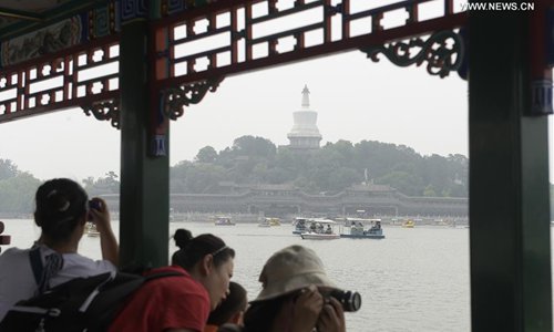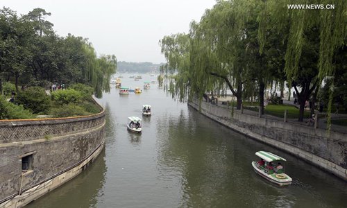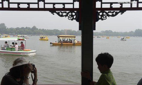 Visitors take boat tours at Beihai Park during the Duanwu holiday in Beijing, capital of China, June 18, 2018. The Chinese people observed the annual Duanwu Festival on Monday. (Xinhua/Lu Peng)