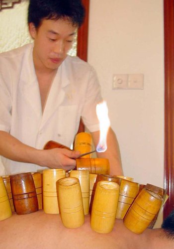 File photo taken on May 6, 2004 shows a doctor practicing cupping for a citizen at Shun'antang, a traditional Chinese medicine hospital, in Guangzhou, capital of south China's Guangdong Province. Traditional Chinese medicine (TCM), one of the world's oldest forms of medicine with different practices including acupuncture, bee-sting therapy, cupping, moxibustion, scrapping, tui na (Chinese therapeutic massage), still prevails in the modern society after thousands of years of evolution, during which generations have restored and maintained health depending on it. The World Health Organization disease index was updated to include references to traditional Chinese medicine for the first time in June 2018. (Xinhua/Chen Xuesi)