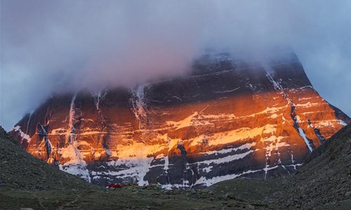Photo taken on June 25, 2018 shows the Mount Kangrinboqe in the morning light in Burang County of Ngari Prefecture, southwest China's Tibet Autonomous Region. (Xinhua/Liu Dongjun)