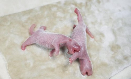 Photo taken on July 2, 2018 shows male-female panda twins at Chengdu Research Base of Giant Panda Breeding in southwest China's Sichuan Province. Panda Qing He gave birth to the twins Monday morning. The female cub weighed 117.2 grams and was born at 7:53 a.m., with the male cub following 23 minutes later, weighing 140.8 grams. Photo:Xinhua