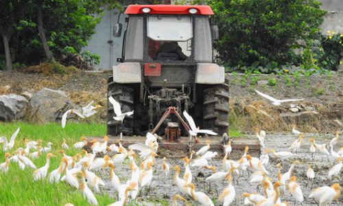 Egrets forage at Jinsu Village in Zhongyun Sub-district of Lianyungang City, east China's Jiangsu Province, July 7, 2018. Saturday marks Xiaoshu, or Lesser Heat, the 11th of the 24 solar terms in the Chinese lunar calendar which means the beginning of hot summer. (Xinhua/Geng Yuhe)