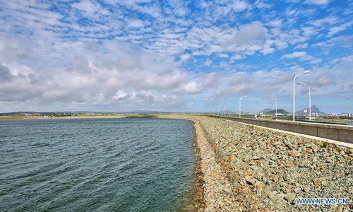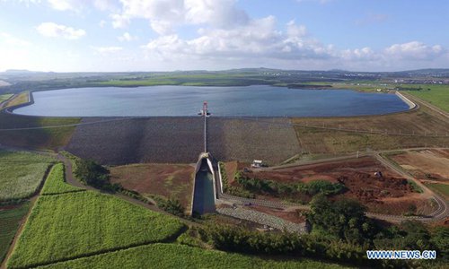 Photo taken on July 25, 2018 shows the Bagatelle dam, 22 kilometers southeast of Port Louis, capital of Mauritius. The pristine beaches in the Indian Ocean Archipelago of Mauritius have always fascinated well-heeled foreign tourists and the China-built Bagatelle dam, which was launched in June this year, has added another sparkle to the country's timeless beauty. (Xinhua/Wang Teng)