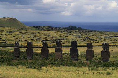 The Seven Moai (anthropomorphic monolithic statues) at the Ahu Akivi Archaeological Site on Easter Island Photo: VCG