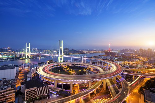 Elevated road and Nanpu Bridge of Shanghai Photos: VCG