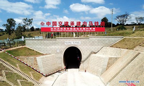 Photo taken on Sept. 24, 2018 shows the entrance of the Ngong tunnel of the Standard Gauge Railway (SGR) in Nairobi, capital of Kenya. China Communications Construction Company (CCCC) has drilled the longest railway tunnel in East Africa, the company said Monday. The tunnel is part of phase 2A of the Standard Gauge Railway that runs from Nairobi to Naivasha town. (Xinhua/Wang Teng)