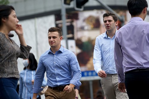 People walk along Nanjing Road West on Tuesday, the first working day after the three-day Mid-Autumn Festival holiday weekend. After a long, hot, humid summer, Shanghai is embracing the cool, dry autumn weather, with the highest temperatures hovering around 26 C to 28 C in the following days. Photo: Chen Xia/GT