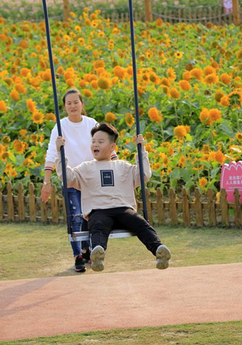 A kid plays on a swing at the Eco Village. Photo: VCG