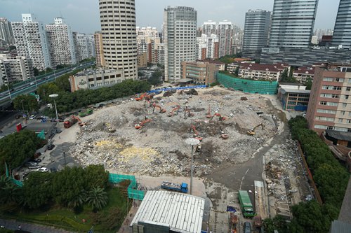 Excavators work on the site of the Shanghai International Gymnastic Center in Changning district on Tuesday. The main part of the building was demolished recently and an upgrade project will be started soon. Established in 1997, the center used to hold many major sports event. Covering an area of about 30,000 square meters, the new version will contain seven floors, with four underground, according to media reports. It will be used for multiple purposes including high-level sports events, training, shows and performances as well as citizen fitness. Photo: Yang Hui/GT