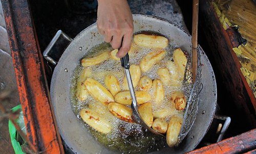 A vendor cooks caramelized bananas on the World Food Day along a street in Manila, the Philippines, Oct. 16, 2018. World Food Day is celebrated every year on Oct. 16 to commemorate the founding of the UN Food and Agriculture Organization in 1945. (Xinhua/Rouelle Umali)