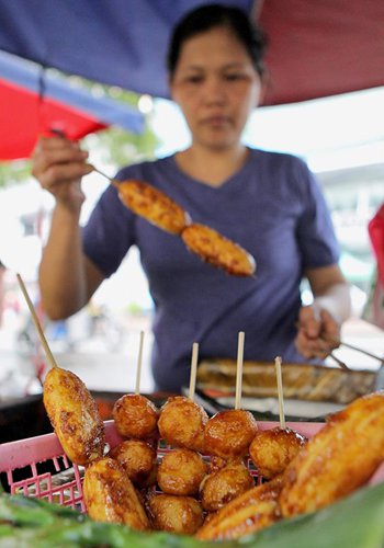 A vendor sells caramelized bananas on the World Food Day along a street in Manila, the Philippines, Oct. 16, 2018. World Food Day is celebrated every year on Oct. 16 to commemorate the founding of the UN Food and Agriculture Organization in 1945. (Xinhua/Rouelle Umali)