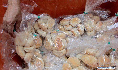 A worker prepares packs of bread at a bakery on the World Food Day in Quezon City, the Philippines, Oct. 16, 2018. World Food Day is celebrated every year on Oct. 16 to commemorate the founding of the UN Food and Agriculture Organization in 1945. (Xinhua/Rouelle Umali)