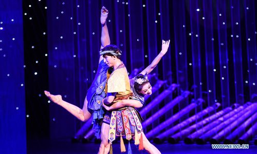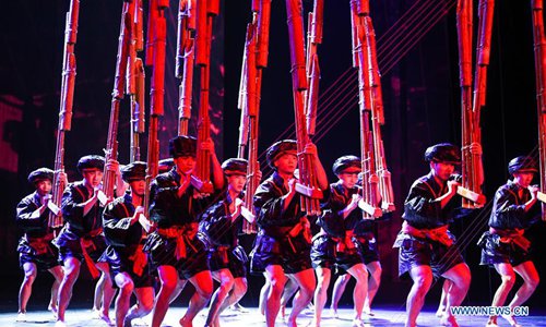 Actors from Liuzhou art theatre perform a dancing drama named "Dong" at Guiyang, capital of southwest China's Guizhou Province, Oct. 22, 2018. (Xinhua/Tao Liang)