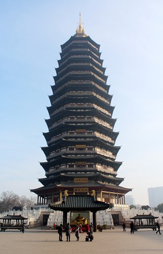Going up the pagoda, which at 13 stories high and 154 meters tall is the tallest pagoda in the world, you'll find numerous valuable treasures, religious paraphernalia and statues made of gold, wood or jade.