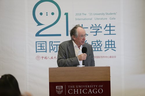 Well-known British novelist Ian McEwan was awarded The 21 University Students International Literature Award at a gala held at Renmin University of China in Beijing on Friday afternoon.