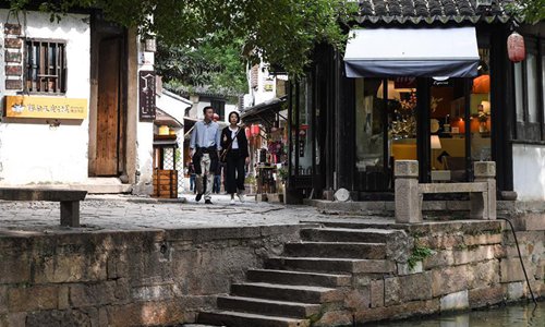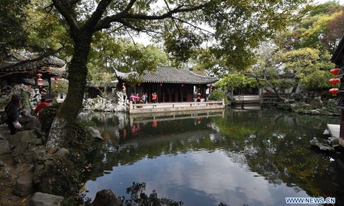 Tourists visit the Tuisi Garden within Tongli ancient town in Wujiang District of Suzhou, east China's Jiangsu Province, Oct. 31, 2018. Boasting rich tourism resources in ancient towns like Tongli, Wujiang District in recent years made efforts to integrate them with various elements such as local cultures and natural views to help boost local tourism. (Xinhua/Li Bo)