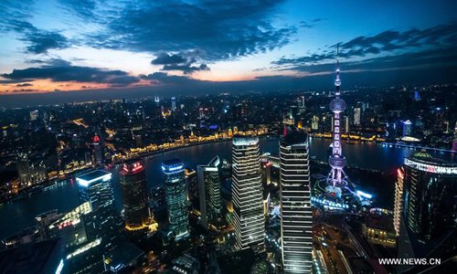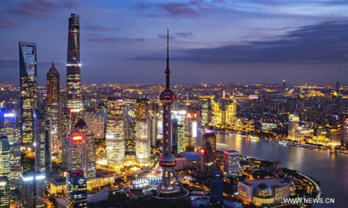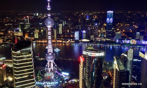 Photo taken on Nov. 3, 2018 shows the night view of Shanghai, east China. The first China International Import Expo (CIIE) will be held on Nov. 5-10 in Shanghai. (Xinhua/Li Xin)