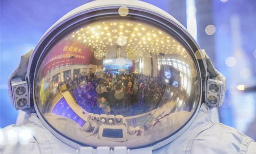 Spacesuit is displayed during a major exhibition to commemorate the 40th anniversary of China's reform and opening-up at the National Museum of China in Beijing, capital of China, Nov. 24, 2018. (Xinhua/Yin Gang)