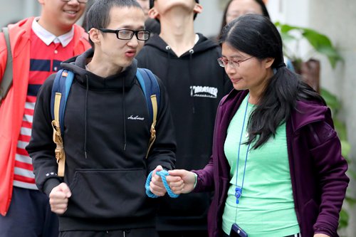 Chen Xiaobin trains new guides how to use a guide rope. Photo: Yang Hui/GT