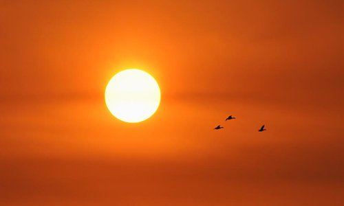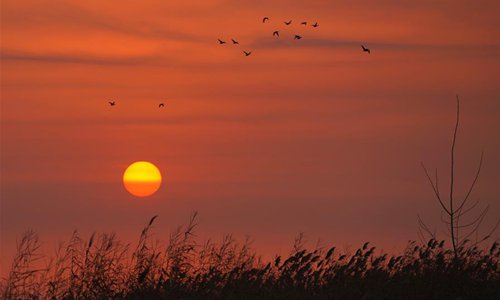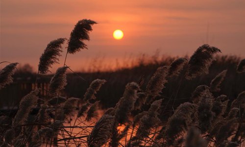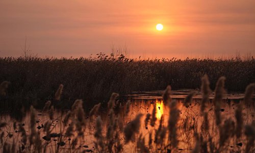 Photo taken on Dec. 6, 2018 shows the sunrise in Baiyangdian of Anxin County, Xiongan New Area, north China's Hebei Province. (Xinhua/Xing Guangli)