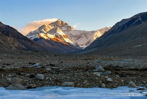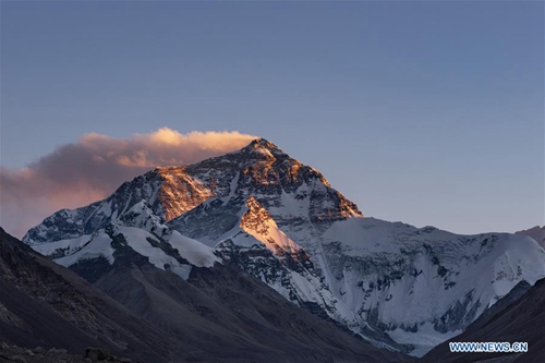 Photo taken on Dec. 8, 2018 shows the sunset scenery of Mount Qomolangma in southwest China's Tibet Autonomous Region. (Xinhua/Zhang Rufeng)
