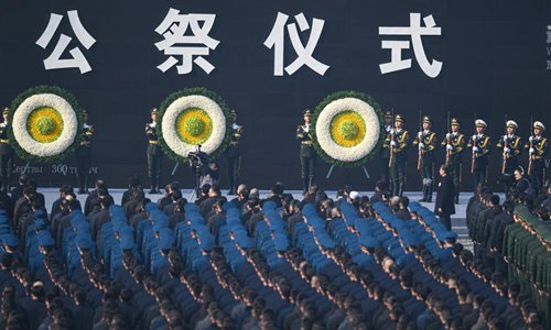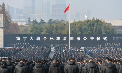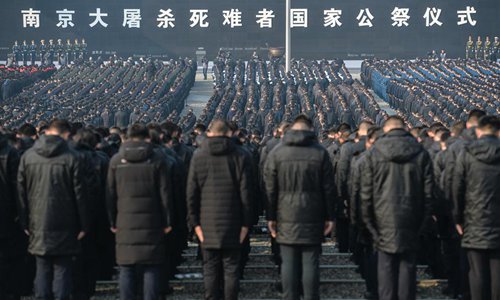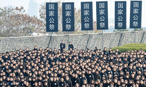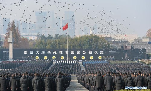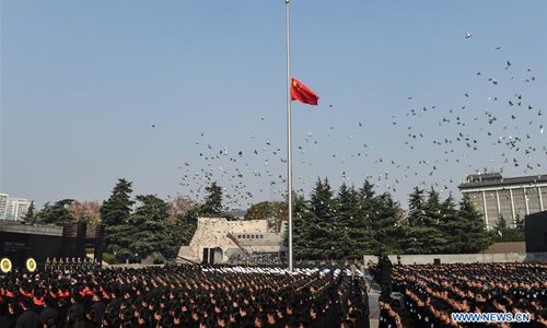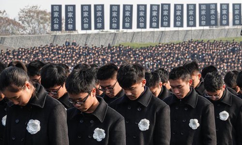 Photo taken on Dec. 13, 2018 shows the scene of the state memorial ceremony for China's National Memorial Day for Nanjing Massacre Victims at the memorial hall for the massacre victims in Nanjing, capital of east China's Jiangsu Province. (Xinhua/Yang Lei)