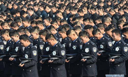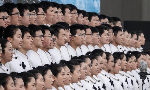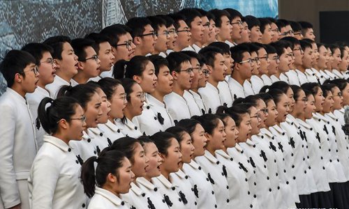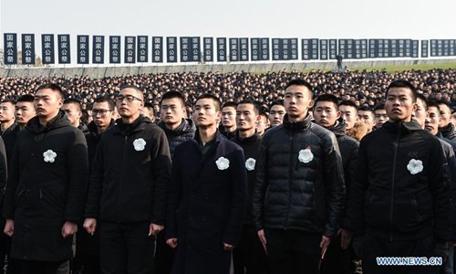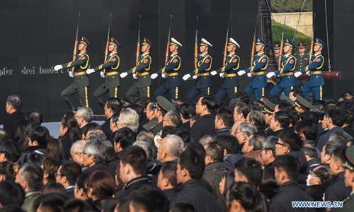 Photo taken on Dec. 13, 2018 shows the scene of the state memorial ceremony for China's National Memorial Day for Nanjing Massacre Victims at the memorial hall for the massacre victims in Nanjing, east China's Jiangsu Province. (Xinhua/Ji Chunpeng)