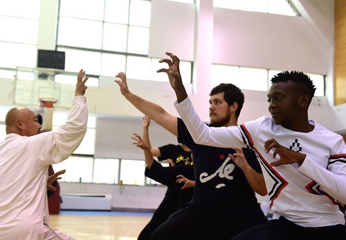 International students learn kung fu at the Shajiamen Martial Arts School in Cangzhou, Heibei Province, on May 12. Photo: VCG