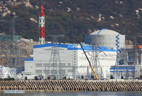 Photo taken on Oct. 27, 2018 shows the exterior of the Tianwan Nuclear Power Plant in Lianyungang city in east China's Jiangsu Province. With the completion of debugging efforts of the Unit 4 generator on Saturday, the second phase of the power plant was put into commercial operation. (Xinhua/Geng Yuhe)