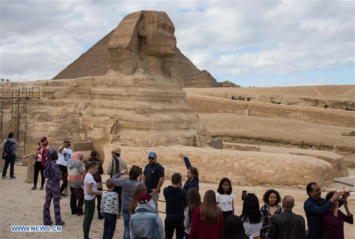 Tourists visit the Great Sphinx in Giza, Egypt, Dec. 26, 2018. (Xinhua/Meng Tao)