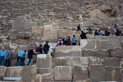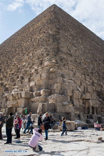 Tourists visit the Pyramid of Khufu at the Giza Plateau in Giza, Egypt, Dec. 26, 2018. (Xinhua/Meng Tao)