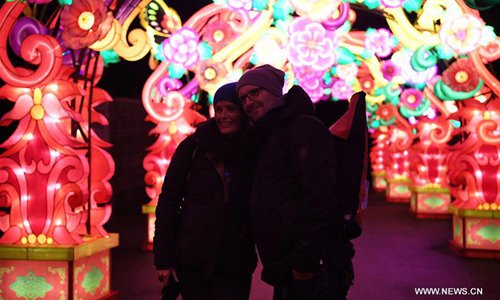 People visit China Light Festival at Cologne Zoo in Cologne, Germany, on Jan. 3, 2019. The festival is held here presenting more than 50 lights from Dec. 8, 2018 to Jan. 20, 2019. (Xinhua/Lu Yang)