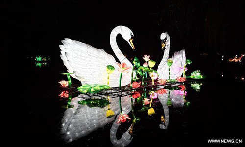 Illuminated swans are seen during China Light Festival at Cologne Zoo in Cologne, Germany, on Jan. 3, 2019. The festival is held here presenting more than 50 lights from Dec. 8, 2018 to Jan. 20, 2019. (Xinhua/Lu Yang)