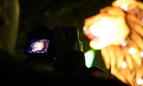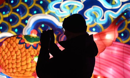 A visitor takes photos during China Light Festival at Cologne Zoo in Cologne, Germany, on Jan. 3, 2019. The festival is held here presenting more than 50 lights from Dec. 8, 2018 to Jan. 20, 2019. (Xinhua/Lu Yang)