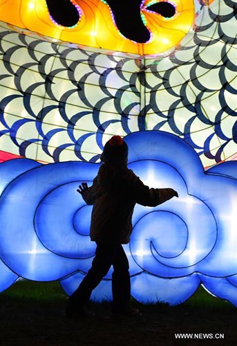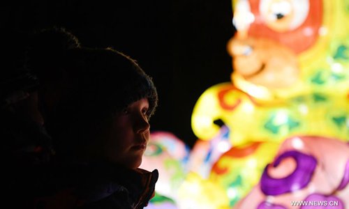 A child visits China Light Festival at Cologne Zoo in Cologne, Germany, on Jan. 3, 2019. The festival is held here presenting more than 50 lights from Dec. 8, 2018 to Jan. 20, 2019. (Xinhua/Lu Yang)