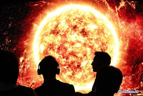 Visitors watch a display of Samsung during the Consumer Electronics Show (CES) in Las Vegas, the United States, on Jan. 8, 2019. 2019 CES highlights new displays from global companies, such as LG, Samsung and Sharp. CES, the world's largest trade show to present new products and technologies in the consumer electronics industry, runs till Friday, attracting about 4,500 exhibitors and 180,000 attendees in 2019. (Xinhua/Liu Jie)