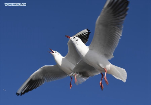 Photo taken on Jan. 13, 2019 shows red-billed gulls at Cuihu Park in Kunming, capital of southwest China's Yunnan Province. (Xinhua/Yang Zongyou)