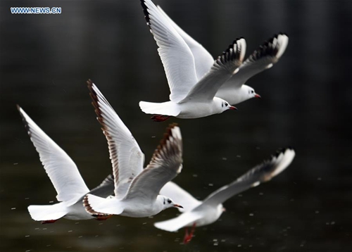 Photo taken on Jan. 7, 2019 shows red-billed gulls at Cuihu Park in Kunming, capital of southwest China's Yunnan Province. (Xinhua/Yang Zongyou)