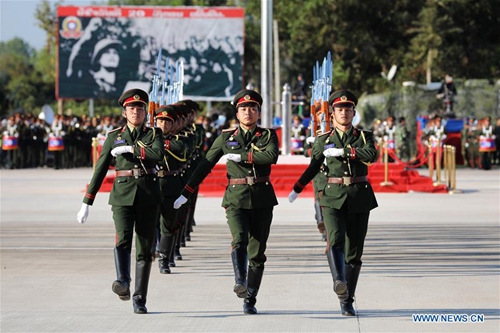 Photo taken on Jan. 20, 2019 shows the celebration of the 70th anniversary of the founding of the Lao People's Armed Forces in Vientiane, Laos. (Xinhua/Ju Zhenhua)
