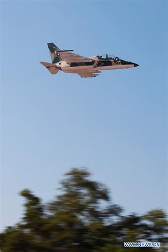 A Yak-130 advanced jet trainer flies low in the air during a celebration of the 70th anniversary of the founding of the Lao People's Armed Forces in Vientiane, Laos, Jan. 20, 2019. (Xinhua/Ju Zhenhua)