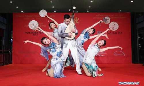 Artists perform in a shopping mall at Potsdamer Platz in Berlin, capital of Germany, on Jan. 24, 2019. "Happy Chinese New Year," a series of Chinese cultural celebrations for the upcoming Spring Festival, kicked off in downtown Berlin on Thursday. (Xinhua/Shan Yuqi)