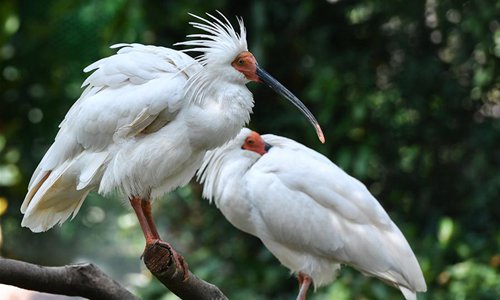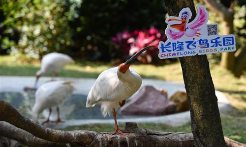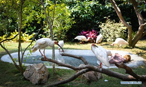 Crested ibises are seen at the Chimelong Birds Park in Guangzhou, south China's Guangdong Province, Jan. 26, 2019. A total of 150 crested ibises, a bird once thought to be extinct, have been bred in the past seven years at the park. (Xinhua/Liu Dawei)